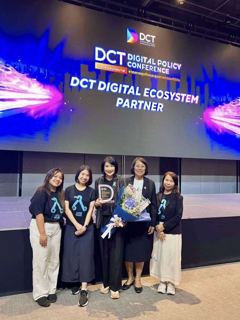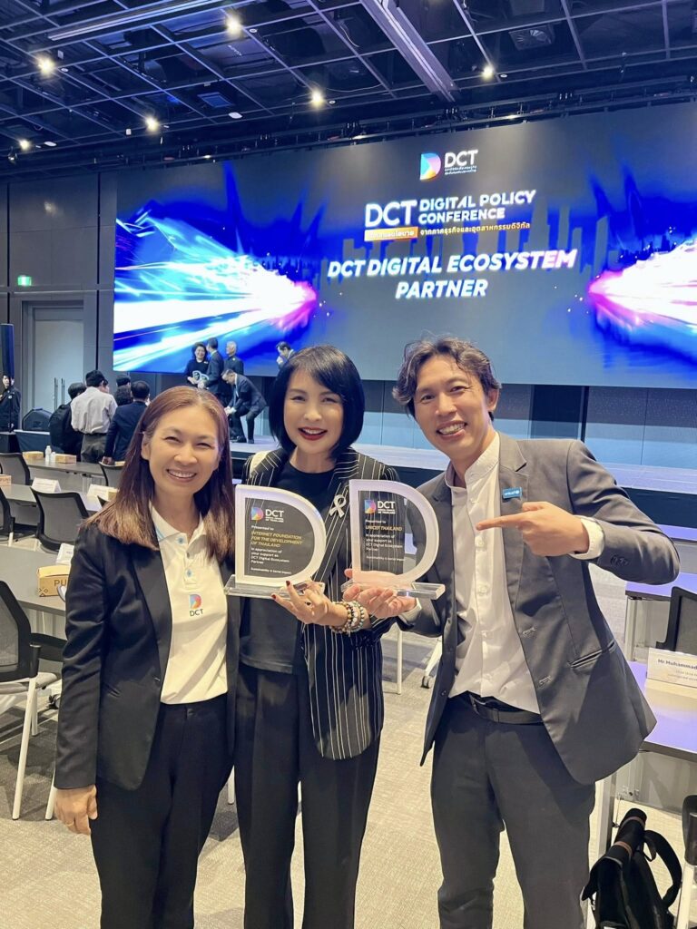 วันที่ 27 กุมภาพันธ์ 2569 – มูลนิธิอินเทอร์เน็ตร่วมพัฒนาไทย รับมอบโล่ประกาศเกียรติคุณ "DCT Digital Ecosystem Partner" ในสาขา Sustainability & Social Impact (ด้านความยั่งยืนและผลกระทบทางสังคม) จากสภาดิจิทัลเพื่อเศรษฐกิจและสังคมแห่งประเทศไทย (DCT) ตอกย้ำความสำเร็จในการนำเทคโนโลยีดิจิทัลมาสร้างประโยชน์และลดความเหลื่อมล้ำในสังคมอย่างยั่งยืน