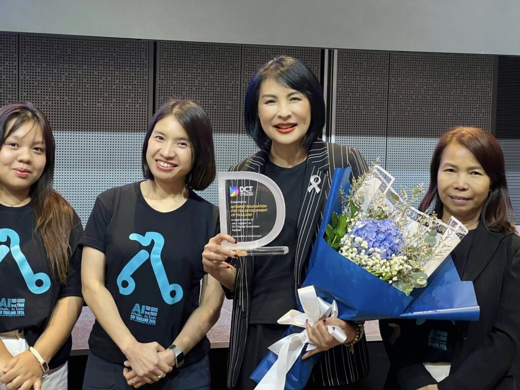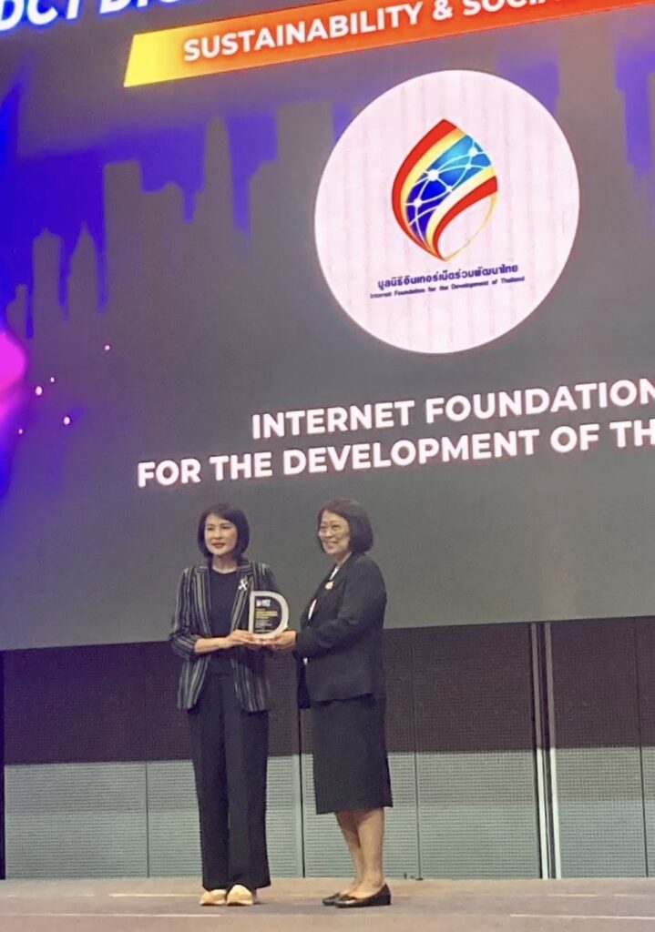 ภายในงานพิธีมอบรางวัล [ระบุชื่องานถ้ามี] ตัวแทนจากมูลนิธิอินเทอร์เน็ตร่วมพัฒนาไทย ได้แสดงความขอบคุณสภาดิจิทัลฯ ที่ให้โอกาสในการทำงานร่วมกันเพื่อขับเคลื่อนระบบนิเวศดิจิทัลของไทย โดยรางวัลนี้ถือเป็นขวัญและกำลังใจสำคัญให้กับทีมงานในการมุ่งมั่นพัฒนาโครงการต่างๆ ที่เชื่อมโยงนวัตกรรมเข้ากับการยกระดับคุณภาพชีวิตของประชาชน