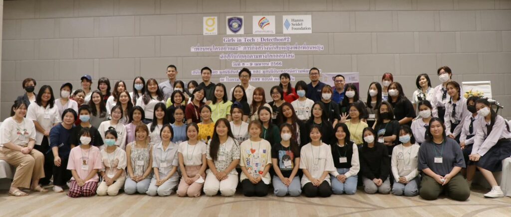 Girls in Tech Detecthon Detecthon 2 กับภารกิจเพื่อนหนูใครอย่าแตะ สนับสนุนโดย Hanns Seidel Foundation Thailand และ มูลนิธิอินเทอร์เน็ตร่วมพัฒนาไทย ณ โรงแรม TK Palace แจ้งวัฒนะ กรุงเทพมหานคร วันที่ 8-9 เมษายน 2566