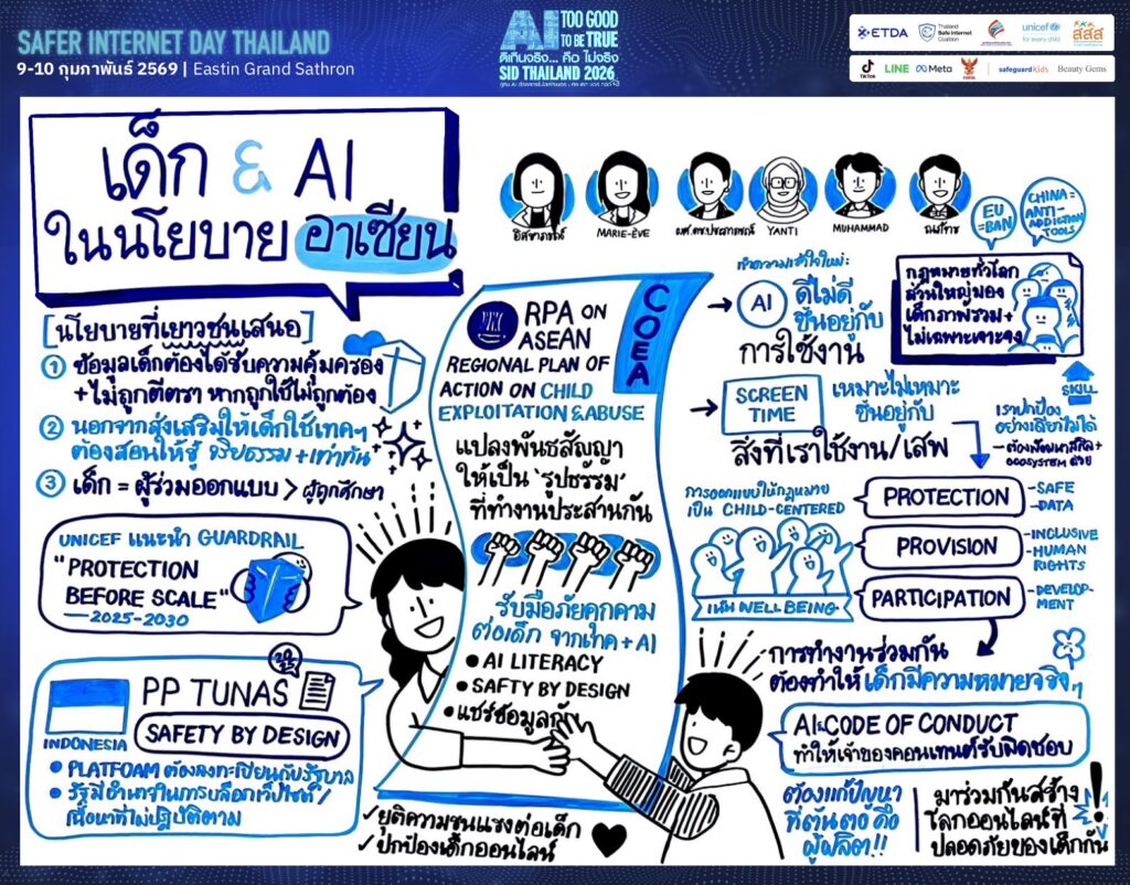 - เน้นความร่วมมือที่ประสานกันทั้งภูมิภาคเพื่อรับมือภัยคุกคามใหม่ ๆ จาก AI โดยยึดหลัก AI Literacy และ Safety by Design (การออกแบบให้ปลอดภัยตั้งแต่ต้น)