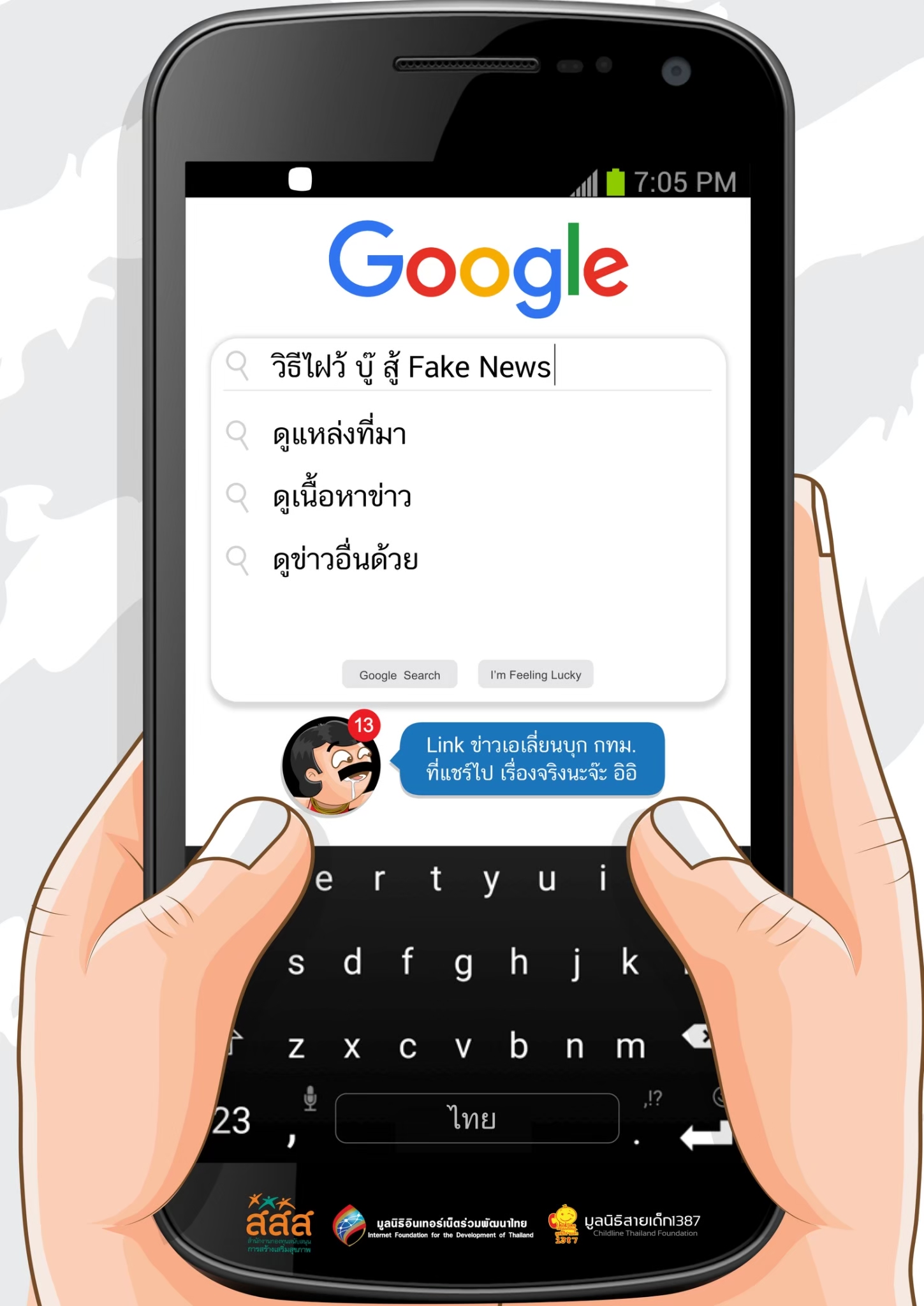 โปสเตอร์การ์ตูน ตรวจสอบเนื้อหา Fake News